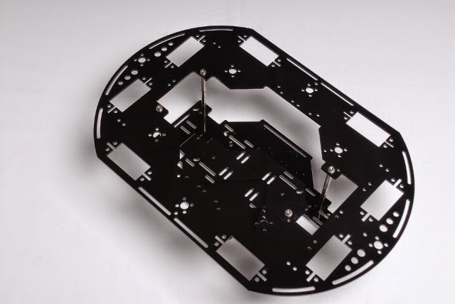 Chassis: Main parts of the robot chassis are 2 acrylic plates, the superior plate and the inferior plate. The assembly of the chassis is shown in the picture above: